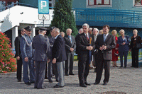 oznajmiając miastu święto polskich skrzydeł.W uroczystości tej uczestniczyły władze miasta z Burmistrzem p. Andrzejem Wojciechowskim na czele. Licznie zgromadzili się też członkowie naszego Oddziału, członkowie Związku Żołnierzy RP, przedstawiciele zaprzyjaźnionych organizacji pozarządowych i mieszkańcy naszego miasta. Poczet flagowy utworzyli koledzy: ppłk rez. pil. Wł. Puczko, mjr rez. inż. Zb. Skowroński oraz st. chor. sztab. rez. nawig. J. Juszczak. Całe szczęście, że przez tyle lat mundury im się jakoś "nie zbiegły"... Otwarcie ekspozycji poświęconej 2 plm "Kraków"